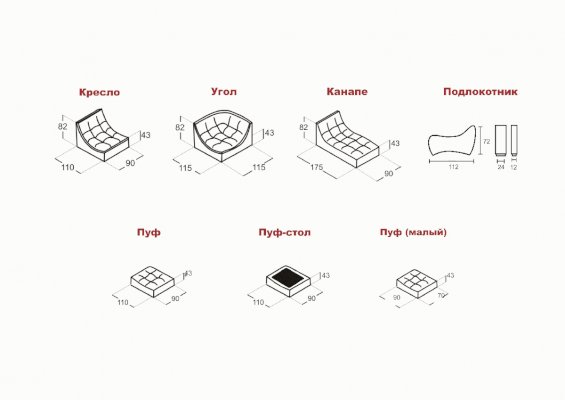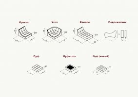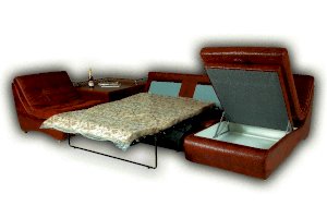 Комплектация: Высокоэластичный ППУ, вместительный ящик для белья, полки, столешница, два вида подлокотников, возможно изменения размеров модулей.