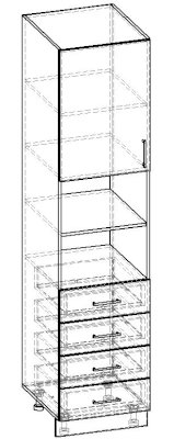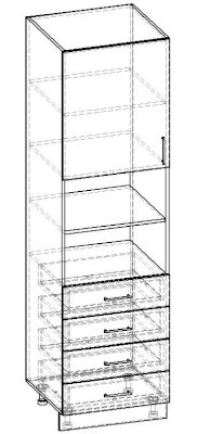 Пенал 1 дверный 4 ящика с полками 600 КП.005.600-01