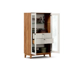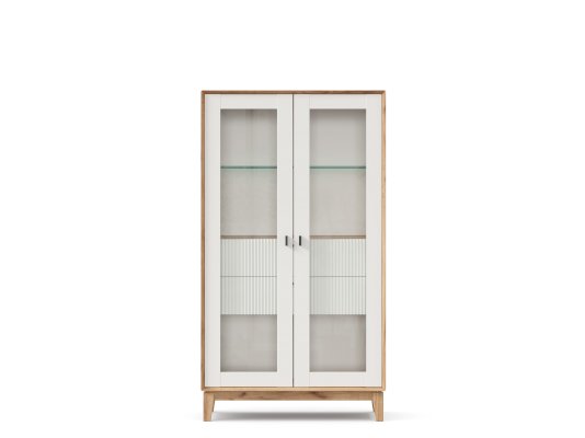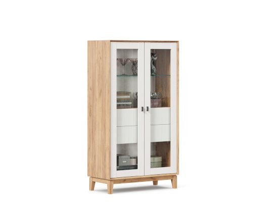 • За сборными распашными дверями со стеклом две стационарные горизонтальные перегородки и одна съемная стеклополка.