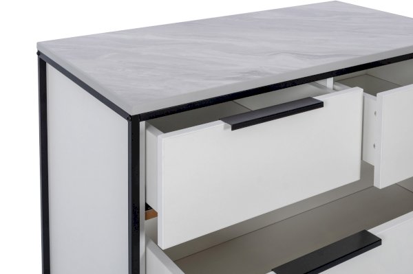 • Внизу 2 больших ящика полного выдвижения. Дно из ДВП оснащено двумя усилителями дна ящика