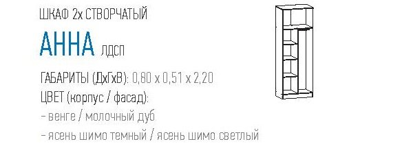 Шкаф 2х створчатый Анна (Террикон) - за 12 399 руб. в Дмитрове. Купите на сайте dmitrov.onlinemarketmebeli.ru или по телефону 8(800)505-30-63 уже сегодня! Уточнить наличие, комплектацию, актуальную цену можно бесплатно у менеджера ежедневно. Закажите Шкаф 2х створчатый Анна (Террикон) до конца акции! Доступна покупка в кредит, рассрочку. Доставим со склада или на заказ.