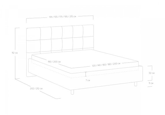 Нестандартную длину кровати 210, 220 см необходимо согласовать с менеджером!