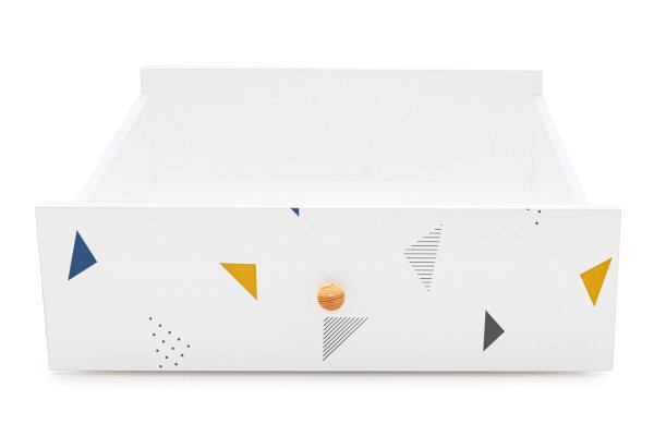 Ящики на колесиках удобны, когда нужно помыть полы под кроваткой или переставить ее с легкостью на другое место. Ребенок сможет самостоятельно при необходимости выдвинуть и задвинуть ящик. Ящик объемом 0,6 куб.м. отлично подойдёт для хранения постельного белья, игрушек и других вещей. Большой выбор фотопечати на фасадах ящика позволят создать свою идеальную кровать.