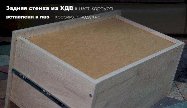 • Задняя стенка вставлена в паз и не видна при обзоре сбоку и сверху