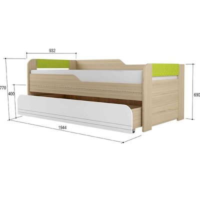 ШхГхВ 2044 х 952 х 770 мм - спальное место: 900х2000 мм