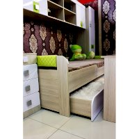 Мебель для детей «Стиль», выполненная в цвете «Лайм» подойдет как для младших, так и для старших школьников. Корпуса детской «Стиль» выполнены из ЛДСП толщиной 16 и 22 мм. Торцы обработаны кромкой ПВХ. Фасады выполнены из плиты МДФ, покрытых глянцевой пленкой белого цвета. Декоративные элементы на фасадах выполнены из МДФ с глянцевой пленкой ПВХ, по периметру подчеркнуты фрезеровкой. Все петли на фасадах с доводчиками. Направляющие на выкатных ящиках - шариковые, полного выдвижения. Мякгие элементы, скругленные углы, пластиковые ручки - все служит безопасности ребенка и придаёт эстетичный внешний вид.