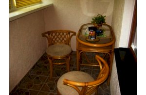 Комплект из ротанга: два кресла и узкий кофейный столик.