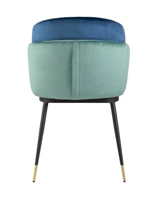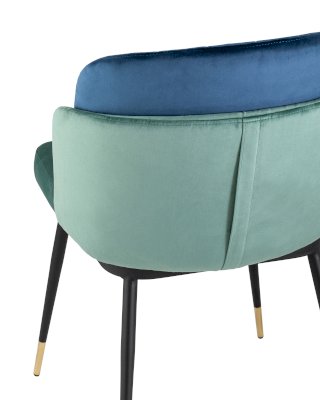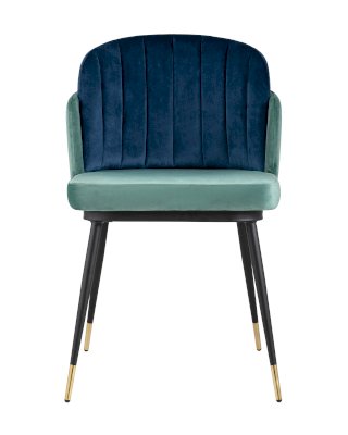 Мягкий двухцветный кухонный стул с обивкой из велюра. Надежная опора достигается благодаря металлическому каркасу и удобным устойчивым ножкам, красиво украшенным золотом. Спинка состоит из двух элементов, внутренняя часть с вертикальной строчкой.