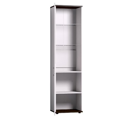 Шкаф для посуды Норвуд 13 - этот модуль создан для красивой посуды, хрупких сувениров. Высокий и узкий шкаф-пенал будет уместен в гостиной любых размеров. Фигурный фасад верхней витрины эффектно совмещает в себе тонированное стекло, ЛДСП и контрастную вставку в цвете Орех Шоколадный. Стеклянные полки из прозрачного стекла толщиной 6 мм. Благодаря модулю Подсветка ADELE 87, которую можно докупить отдельно, теплый свет будет приятно подсвечивать посуду в витрине. В нижнюю закрытую тумбу посудного шкафа можно убрать вещи, не предназначенные для посторонних глаз. Фасады шкафа перевешиваются на левую и правую сторону.