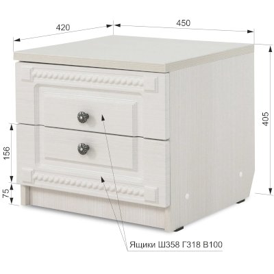 Фурнитура: Ручки металлические со стразами, шариковые направляющие на 2 выкатных ящиках