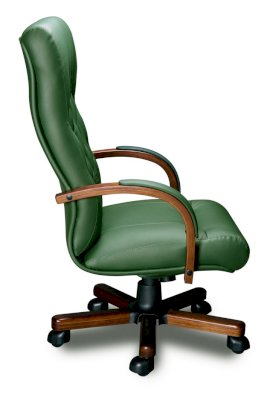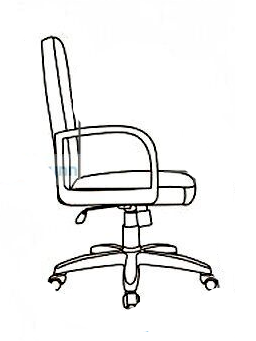 Кресло с высокой спинкой, с подлокотниками дугообразной не замкнутой формы с мягкими накладками обитыми в цвет кресла.