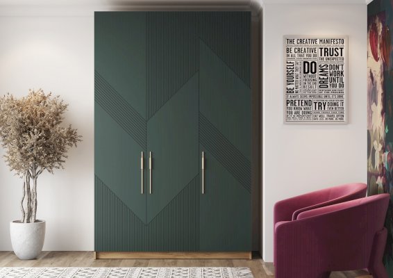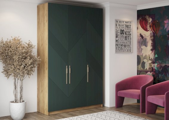 Шкаф "Kosta" — это стильное и функциональное решение для вашего гардероба. Фасады изготовлены из МДФ с уникальной диагональной фрезеровкой, что придает шкафу элегантный вид. Яркое цветовое решение станет акцентом в любом пространстве.