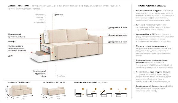 Диван Милтон (Империал) - за 60 776 руб. в Дмитрове. Купите на сайте dmitrov.onlinemarketmebeli.ru или по телефону 8(800)505-30-63 уже сегодня! Уточнить наличие, комплектацию, актуальную цену можно бесплатно у менеджера ежедневно. Закажите Диван Милтон (Империал) до конца акции! Доступна покупка в кредит, рассрочку. Доставим со склада или на заказ.