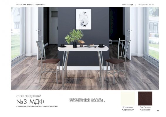 Стол обеденный №3 (Террикон) - за 9 016 руб. в Дмитрове. Купите на сайте dmitrov.onlinemarketmebeli.ru или по телефону 8(800)505-30-63 уже сегодня! Уточнить наличие, комплектацию, актуальную цену можно бесплатно у менеджера ежедневно. Закажите Стол обеденный №3 (Террикон) до конца акции! Доступна покупка в кредит, рассрочку. Доставим со склада или на заказ.