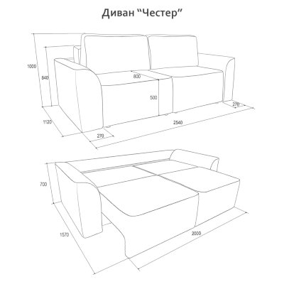 Габариты (ШхГхВ): 2540х1120х1000 мм