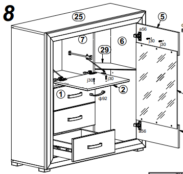 Глубокое и вместительное отделение с откидной дверцей над ящиками.