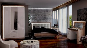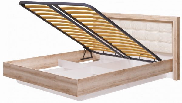 Кровать (спальное место 1600х2000 мм) изготавливается с ортопедическим основанием и подъемным механизмом. Внутри расположены ящики для белья.