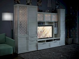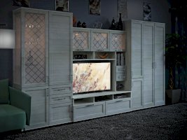 За закрытыми дверками расположены вместительные полки, два выдвижных ящика полного выдвижения, дополняют как внешний вид, так и добавляют дополнительную функциональность модулю.