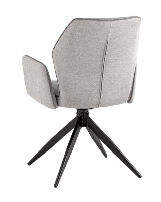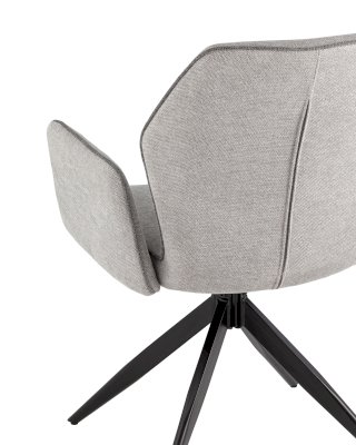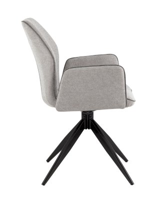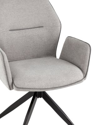 Мягкий стул со спинкой анатомической формы и удобными подлокотниками подарит комфорт и уют. Тканевая обивка оформлена декоративным кантом. Прочные ножки изготовлены из металла в черном цвете, поэтому обеспечивают хорошую устойчивость и делают стул оригинальным. Подпятники на ножках препятствуют скольжению и помогут защитить напольное покрытие от царапин. Изделие будет прекрасно смотреться как отдельный предмет мебели, так и в комплекте с обеденным или письменным столом.