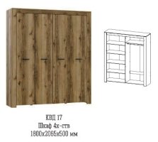 Четырехстворчатый шкаф Квадро-17 (Астрид-Мебель)