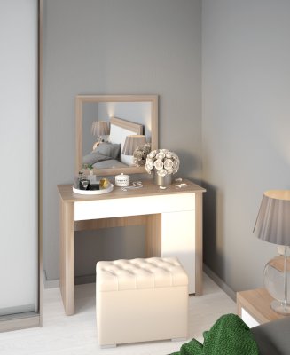 • Столик Глэдис универсален: он может быть использован как рабочее место или в композиции с зеркалом М29 как туалетный уголок.