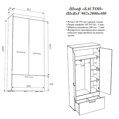 | Наполнение шкафа | штанга / выдвижные ящики |