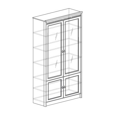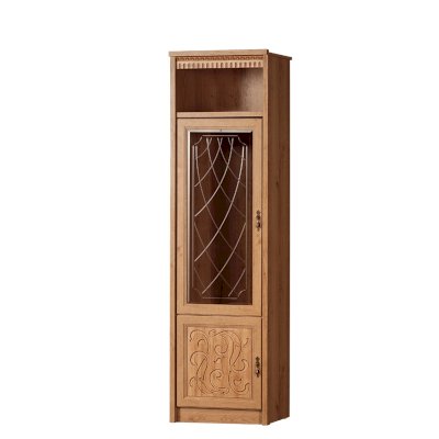 Фасады: МДФ, зеркало с фацетом, прозрачное стекло с фацетом и гравировкой; декоративные вставки с фигурной фрезеровкой: МДФ в пленке ПВХ с эффектом патины