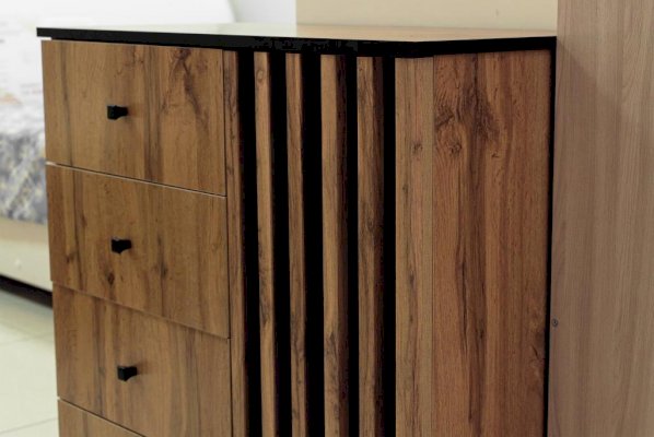 Комод – немного меньше модели 51.04, но сохранил тот же функционал. У него есть выдвижные ящики и полки для вещей за распашной дверцей.