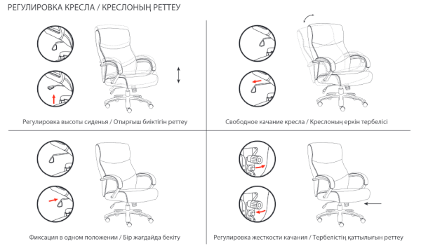 Тип механизма кресла: "топ-ган" качание с регулировкой под вес и фиксацией в 1 положении
