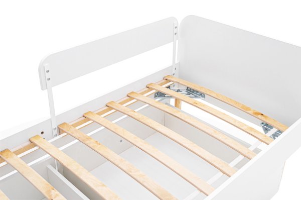 Комплект кровати состоит из каркаса кровати и ортопедического основания. Бортик, ящики, матрас и постельные принадлежности приобретаются отдельно.