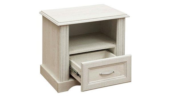 Прикроватная тумба – неотъемлемое дополнение к кровати, поэтому она так и называется – ПРИкроватная.  Если вы выбираете односпальную кровать, то вполне достаточно одной прикроватной тумбы, если же двуспальную – нужно приобрести две – для НЕЕ и для НЕГО. Кроме того, две тумбы просто необходимы, чтобы выдержать симметрию пространства. Модуль разделен горизонтально на две части, и до любого отсека вы легко дотянетесь, не вставая с кровати и не меняя позы – высота изделия идеально просчитана и вам не придется прилагать лишних усилий. Верхний открытый бокс подходит для книг, телефонов, часов, аксессуаров – всего того, чем вы пользуетесь до или после сна. Нижний выдвижной закрытый ящик плавно выдвигается вперед за счет шариковых направляющих. Размеры ящика вполне удовлетворяют потребности владельца – отсек небольшой, но достаточно вместительный. Проверено практикой!