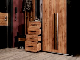 • Внизу тумба с 4-мя выдвижными ящиками на направляющих нижнего крепления полного выдвижения