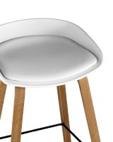 Барный стул Libra Soft белого цвета создан из пластика и дерева. Гармоничное сочетание этих материалов – основа интерьеров в стиле лофт, минимализм и других современных направлений. Модель выглядит очень элегантно и лаконично, благодаря четким геометрическим формам, отсутствию подлокотников и полноценной спинки. Высота изделия соответствует стандартной барной стойке и составляет 75 см.
