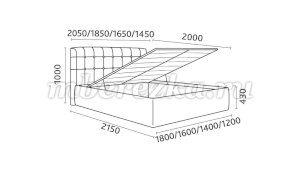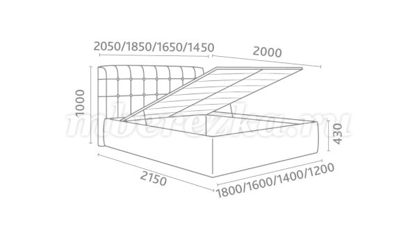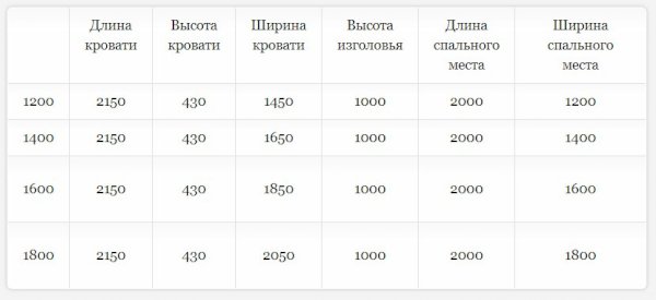 Кровать доступна в 4-х размерах: 1200, 1400, 1600 и 1800 мм.