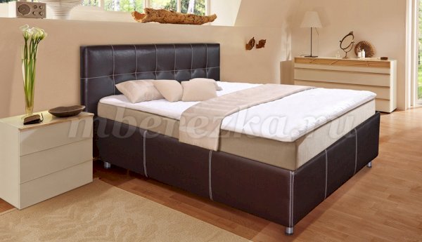 Строгий образ смягчают утяжки. В качестве наполнения используется мебельный поролон и настилочный материал ППУ. В стоимость кровати «Сонет» включено ортопедическое основание. Подъемный механизм на газлифтах. Модель имеет вместительный ящик для белья. Удобство этой модели кровати дополняет съемный чехол.