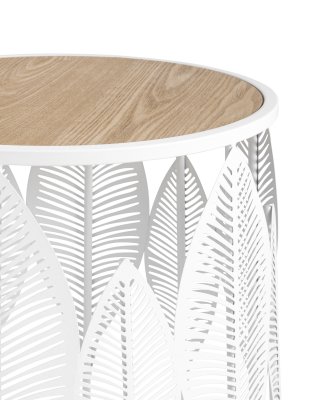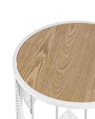 Круглый журнальный столик. Столешница выполнена из МДФ и покрыта шпоном светлого дерева, гармонично сочетается с природными мотивами основания столика. Металлический каркас выдерживает нагрузку до 50 кг. Журнальный столик поможет дополнить интерьер в эко-стиле и добавить уюта.