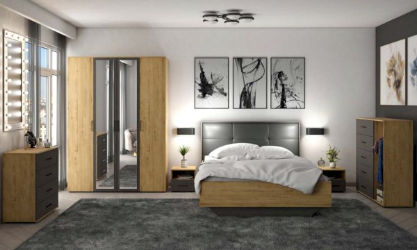 Ортопедическая решетка и ортопедическая решетка с подъемным механизмом и большим бельевым ящиком; большие зеркальные шкафы, несколько видов комодов, один из которых с открытой штангой, и небольшой туалетный столик помогут вам создать функциональную и индивидуальную спальню.