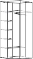 Угловой шкаф - практичная система хранения, позволяющая рационально использовать внутреннее пространство мебели для размещения всего необходимого. Наполнение шкафа состоит из отдела с шестью полками и штангой для одежды.