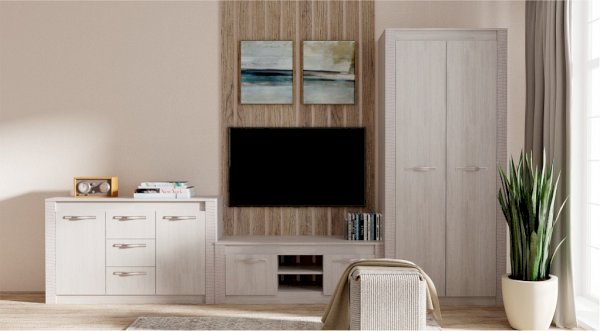 Гостиная «Монако» - это стильный современный дизайн, надёжная фурнитура, просторные шкафы для одежды и белья. За стеклеными створками можно разместить как дорогой фамильный сервиз, так и любой другой аксессуар, которым по праву гордится Ваша семья. До мелочей продуманная возможность установки телевизора делают гостиную ещё более удобной в эксплуатации В правильно составленной композиции, все элементы гарнитура дополняют друг друга, и раскрывают свою незаменимость.