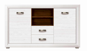MALTA – коллекция мебели, состоящая из множества функциональных модулей, которые позволяют обустроить любую комнату. Великолепные белоснежные фасады коллекции Malta удачно контрастируют со вставками из «орех лион», продолговатые  металлические ручки добавляют изящества, а подсветка стеклянных полок выгодно подчеркивает древесную структуру дерева.