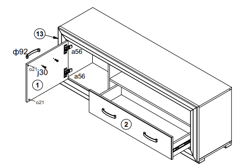 Двери шкафа могут устанавливаться как с правой, так и с левой стороны.