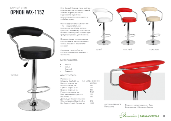 | Разновидность стула | барный |