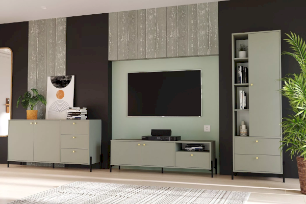 Тумба из коллекции Нуар цвета Хаки подойдет для тех, кто ищет необычный современный дизайн. Это слияние двух стилей – строгая геометрия линий придает сдержанности и минимализма, а изящные формы добавляют классического благородства. Круглые золотые ручки подчеркивают уникальность стиля коллекции.