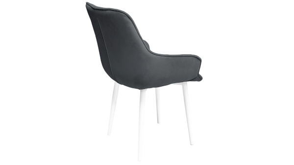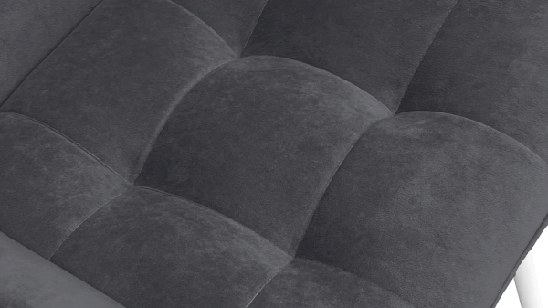 Опора изделия выполнена из металла, окрашена в матовые глубокие цвета «Черный муар» и «Белый муар», которые сейчас очень популярны. На ножках предусмотрены пластиковые заглушки, которые придают стулу дополнительную устойчивость и защищают пол от царапин. Основой мягкого элемента служит фанера и ППУ. Для обивки стула используется велюр DREAM.