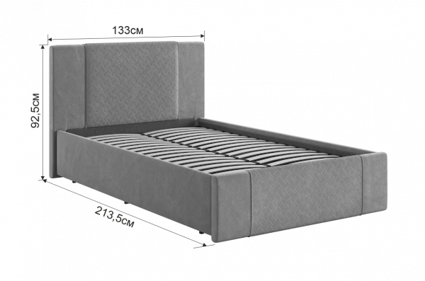 Изготовлена кровать из высококачественных материалов - ППУ и ткани велюр. Спинки украшены стеганым объемным рисунком, который добавляет изысканности и уюта. Прямые и лаконичные формы кровати подчеркивают ее современный дизайн.