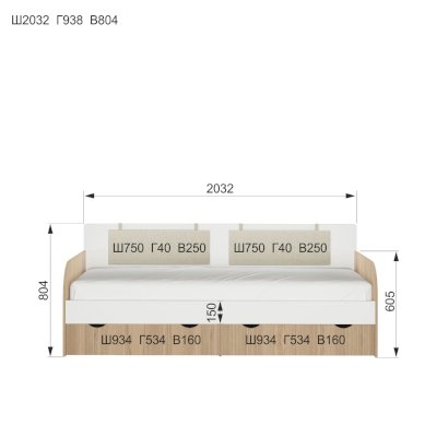 Размер спального места, см 80х160 / 90х200