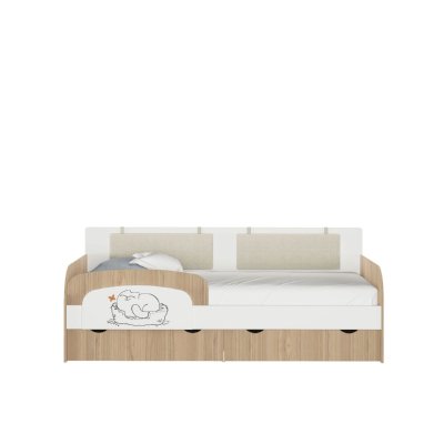 отличная кроватка, собрали часа за 2,5, ни каких косяков в плане сборке и качестве деталей не обнаружено. выбирали долго, рассматривали мягкие варианты, в итоге остановились на этой. ребенку очень понравилась, особенно котик на бортике. + мягкие подушки и два выкатных ящика. и все это за приемемые деньги. матрас брали высотой 20 см, вполне можно и меньше брать.