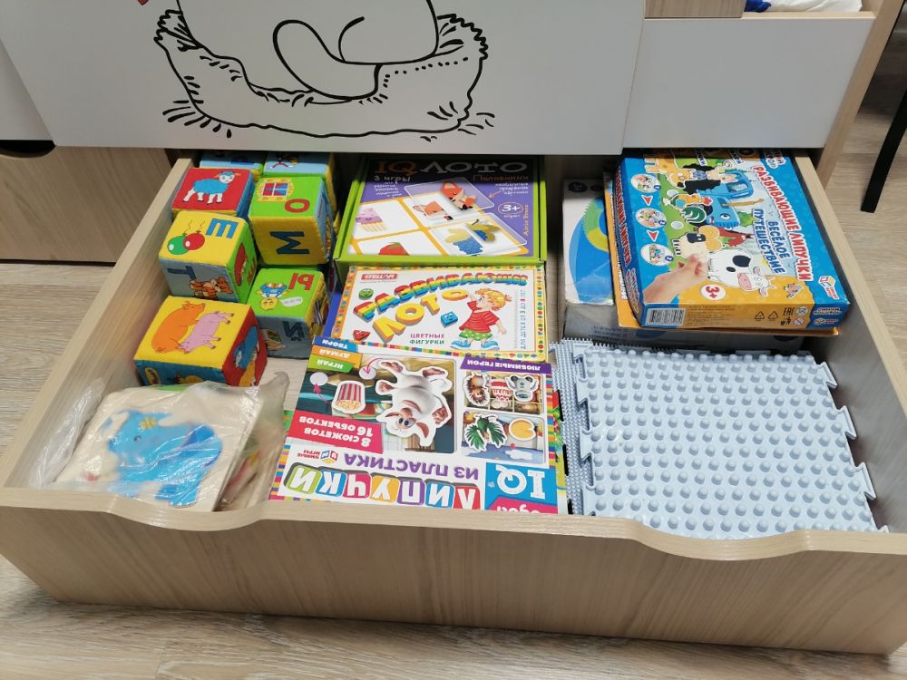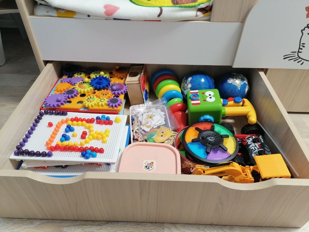 Доброго времени суток! Хочу оставить отзыв о нашей кровати. Покупали ребёнку, 3 года. В использовании неделю, недостатков не увидели. Очень порадовала качественная упаковка. Деффектов не было. В сборке заняла около 2х часов времени. Вместительные ящики с крепкими качественными полозьями, удобный съёмный бортик-регулируется по любой удобной стороне, качественно сшитые чехлы на липучках, легко можно снять и постирать. Большим плюсом служит то, что кровать не реечная, а состоит из 3х досок - это предаёт кровати крепость и устойчивость. Ножки против скольжения тоже были установлены. Единственный недостаток, не связанный с кроватью, это её доставка. Не смогли договориться на удобное время, поскольку я работаю и забрать её утром получилось с помощью других людей. В общем мы очень довольны покупкой, спасибо большое продавцу! Процветания и успехов!