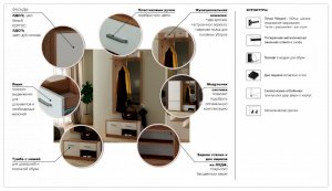 «Стелс» - это отличное, компактное и функциональное решение, если у Вас небольшая прихожая. Она включает в себя все самое необходимое. Вы сможете повесить одежду и сумку на вешалку, на верхнюю полку разместить шляпки и другие головные уборы, в нижнее отделение с полками поставить обувь и положить нужные для Вас вещи. А встроенное зеркало поможет перед выходом удостовериться, что Вы прекрасно выглядите.