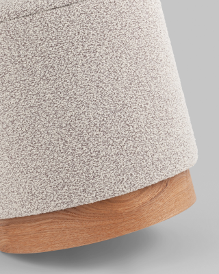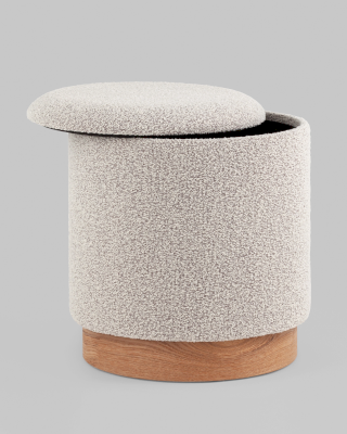 Лаконичный пуф в скандинавском стиле. Обивка выполнена из искусственного меха тедди - очень мягкий и приятный на ощупь материал. Прочный каркас из фанеры выдерживает на грузку до 150 кг. Основание из светлого массива дерева гармонично сочетается с белой обивкой. Пуф оснащен вместительным ящиком для хранения различный мелочей. Отличное функциональное дополнение для детской или спальни.